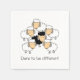 Des serviettes de mouton noires amusantes. Un groupe de moutons blancs aux visages roses et aux oreilles grises entoure un mouton noir laineux, aussi au visage rose et aux oreilles grises. Ci-dessous, une légende "ose être différent" en lettres noires.