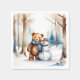 Serviette En Papier Ours En Conduite D'Hiver Et Snowman