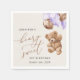 Ajoutez une touche personnelle à votre fête d'anniversaire avec ces objets de fête élégants et mémorables ! Le design présente un ours en peluche avec des ballons violets sur un arrière - plan beige.