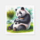 Un ours de panda berce un bébé panda dans une prairie verdoyante, avec du bambou se balançant doucement dans l'arrière - plan.
