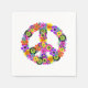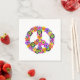 Cette serviette en papier a un signe de paix floral dans les tons rose, turquoise, jaune, orange, violet, vert et noir.