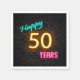 Panneau de néon rétro brillant sur mur en brique pour 50ème anniversaire.