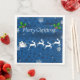 Ajoutez une touche festive à vos dîners ou fêtes de vacances avec un ensemble de serviettes en papier de Père Noël bleu et de rennes. La conception de la serviette est faite de traîneau à Père Noël orné de baies sèches et tiré par son renne contre un arrière - plan bleu aux flocons de neige tombants. Autres cadeaux et objets de vacances disponibles avec ce design aussi.