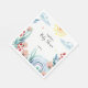 Papier baby shower Napkin avec d'adorables images plantes aquarelle avec des feuilles émeraude et bleu pastel doux, des branches, des arcs-en-ciel et des fleurs roses douces.