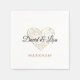 Montrées ici sur des serviettes en papier blanc de la taille standard du cocktail, ces serviettes ont un coeur d'or créé de tourbillons avec les noms de couples surlignés sur elle. Le nom de famille figurant sous le nom en caractères gras. Customisez cet objet ou achetez tel que conçu. Coordonnées avec les "invitations au mariage du Temple du Coeur d'Or" et le Ballotin du Coeur d'Or. Plaques de papier correspondant disponibles.