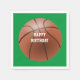 Le ballon de panier sport des serviettes en papier à thème, avec des graphiques d'un basket-ball marron contre un arrière - plan vert. Personnalisez le texte blanc pour lire ce que vous voulez. Des assiettes et des tasses de papier correspondant sont disponibles.