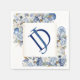 Serviette florale bleu poussiéreuse mariage côtière aux étoiles de mer et coquillages.
