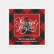 Une serviette en papier coloré avec l'expression "Avoir une saison de fêtes magique !" en écriture blanche typographie sur un arrière - plan de buffle rouge moderne plaid. Personnalisé avec votre nom et votre salutation de Noël. Fournitures de fête, cartes de Noël et étiquettes de retour disponibles dans mon magasin. Design©Rosalind Moore, Cherry Lane Designs