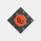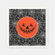 La serviette en papier de fête d'Halloween est montrée avec une toile d'araignée festive et imprimé citrouille visage. Customisez cet objet ou achetez tel quel. Vendu dans l'emballage Image sous licence