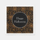 La serviette en papier de la fête d'Halloween est présentée avec un imprimé d'araignée festif. Couleurs Noir & Orange. Customisez cet objet ou achetez tel quel. Image sous licence