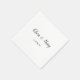 Serviettes en papier mariage blanc chic avec des noms personnalisés et date dans élégant script noir. Ajoutez facilement vos détails personnalisés.
