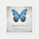 Serviettes Mariages élégantes et simples, avec un Papillon bleu contre un arrière - plan gris. Ce design est un choix unique pour un mariage moderne. Facile à customiser avec vos détails mariages. Cliquez sur "Customiser" pour trouver d'autres options de personnalisation.