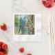 Cette serviette de cocktail d'inspiration vintage présente une illustration magnifiquement détaillée d'un oiseau bleu et rose éclatant, perché sur un poteau de style antique orné. Entouré de fines fleurs roses et d'une végétation luxuriante, le décor évoque un charme campagnard serein. Parfait pour apporter une touche de nature et de beauté intemporelle à tout événement.