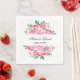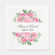 La serviette en papier de fête est montrée avec une impression d'art de belles pivoines roses avec des exemples de noms et de date. Taille standard du déjeuner indiquée. Customisez cet article et modifiez les noms et la date de l'échantillon sur le vôtre. Stock Imprimer freepik.com