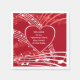 Serviettes en papier personnalisées pour une fête de la Saint-Valentin sur le thème de la musique Hearts, montrant des portées musicales blanches et pêche sur un fond rouge riche, et un cœur au centre avec un TEXTE PERSONNALISABLE, que vous pouvez personnaliser avec votre/vos nom(s) et message. Cela ferait un excellent ajout à vos fournitures de fête de la Saint-Valentin ou de fiançailles, et peut également être personnalisé pour les anniversaires de mariage, les anniversaires et les jours 'Juste Parce Que'. Cadeaux, cartes et articles de fête assortis disponibles parmi une large sélection de modèles de Berean Designs.