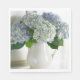 Des serviettes en papier de fête en format déjeuner blanc avec une photo de jolies hydrangées bleues. Customisez cet objet ou achetez tel quel.