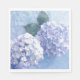 Des serviettes en papier de fête en format déjeuner blanc avec une photo de jolies hydrangées bleues. Customisez cet objet ou achetez tel quel.