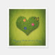 Belle illustration romantique : pelouse en forme de coeur avec fleurs et papillon sur un arrière - plan grungy vert.