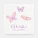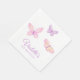 Serviettes d'impression papillon rose et violet mignonnes avec des noms personnalisés pour les fêtes d'anniversaire ou les baby showers.