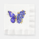 Bijoux, bleu, saphir, papillon aux fleurs pétillantes avec aile décorée de bleu, fleurs précieuses avec feuilles d'or sur arrière - plan blanc.