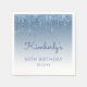 Ces serviettes en papier de fête chic et féminine du cinquantième (ou toute année) d'anniversaire ont une bordure brillante bleue imitant la parties scintillant goutte-à-goutte et bleu ombre arrière - plan. Personnalisez-les avec le nom de l'invitée d'honneur en écriture manuscrite bleue, avec son année d'anniversaire et la date ci-dessous en police bleue sans serif.
