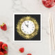 Le design présente des confettis d'or brillant et brillant en rond et une horloge en chiffres romains. Visage blanc/mains noires.