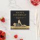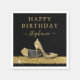 Elégante et chic moderne or et noir Joyeux anniversaire Serviettes personnalisées avec Faux Parties scintillant or haute talon Stiletto Chaussures et nom personnalisé calligraphie script cursive.