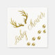 Des serviettes en papier rustiques et élégantes, parfaites pour un baby shower avec une fausse silhouette de bois de cerf imprimé en parties scintillant d'or sur blanc avec de jolies pistes de cerf et vos textes monographiques personnalisés.