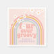 Serviettes de 4e anniversaire d'inspiration rétro Four Ever Super avec hippie style pastel arc-en-ciel, et marguerites
