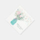 Cette serviette moderne en papier mariage floral, joliment fantaisiste, est ornée d'une jarre en maçon bleu vert, contenant des fleurs roses pâles et blanches et une douce végétation turquoise. Un arrière - plan de confettis rose pastel et bleu se marie avec des éclats d'or pour ajouter de l'intérêt et contraster avec les fleurs délicates. Votre texte personnalisé est turquoise en bas à droite. Assurez-vous de voir les produits mariages correspondants, y compris les invitations, dans notre magasin. *Cette conception utilise des oeuvres de LABFcreations sur Etsy.