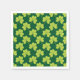 Serviettes en papier avec un motif extensible mignon avec des trèfles vert olive sur un arrière - plan vert foncé.
