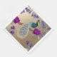 Un paon coloré est perché sur une branche ornée de fleurs vives. L'arrière - plan présente une teinte dorée avec des détails texturés, ce qui renforce l'élégance générale de la scène.