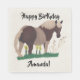 Joli cheval, poney avec Joyeux Anniversaire est imprimé sur des serviettes en papier sur mesure. Ils présentent ma peinture d'un cheval à deux tons dans les tons brun et brun. Ce beau cheval se tient debout, regardant en arrière le spectateur. Le cheval est debout dans l'herbe verte et les hautes fleurs jaunes. Il est facile de personnaliser avec un nom. Merci pour faire du shopping à CherylsArt sur Zazzle.
