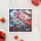 Une collection de coquelicots stylisés avec pétales translucides dans les tons bleu, rouge et blanc sur un arrière - plan noir
