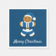 Papier Napkin avec un Père Noël en pain d'épice souriant, en tenue bleue, et les mots "Joyeux Noël". Les mots peuvent être customisés comme vous voulez. Joyeux Noël!