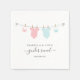 La calligraphie de Whimsical et les articles pour bébé mignons dans les tons doux de rose et de bleu constituent le décor parfait pour vos serviettes de Baby shower.