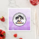Joyeuses serviettes en papier d'anniversaire avec mauve et noir anime fille mangeant de la pizza.