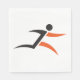 Symbole noir et orange d'une personne qui court. Ce design semble vraiment efficace sur ces serviettes en papier