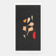 Cette serviette en papier présente des pétales rayés orange, rose pâle et rouge autour de la surface noire.