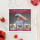 Créez votre propre collage photo unique. Utilisez quatre, 4 de vos photos préférées. Personnalisez et ajoutez un nom, un âge, une date. Un arrière - plan bordeaux. Texte blanc.