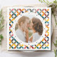 Photo personnalisée Serviettes personnalisées colorées modernes avec motif géométrique moderne et coloré avec votre photo préférée au centre. CONSEIL PHOTO : centre votre photo avant de la télécharger sur Zazzle. Conçu par Evco Studio www.zazzle.com/store/evcostudio