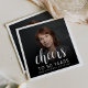 Cette serviette de 50e anniversaire personnalisée présente l'invité d'honneur de la photo, nom, et anniversaire, ainsi que le mot "Cheers" dans élégant script de calligraphie blanche. Un écran sombre permet de faire apparaître le texte. Une excellente façon de célébrer quelqu'un qui a cinquante ans !