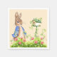 Peter le lapin dans son petit jardin fleuri en train de vérifier la jolie maison des oiseaux.