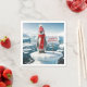 Un mignon pingouin portant un casquette rouge et une écharpe perché sur un iceberg avec un joyeux panneau de Noël en Antarctique.