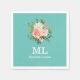 Serviette En Papier Pink Floral and Teal Monogram