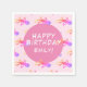 Pink Gecko Lizard Girl Anniversaire Serviettes. Les serviettes ont de mignons geckos arc-en-ciel roses avec des taches. Le texte est en blanc sur l'arrière - plan rose. Idéal pour la fête d'anniversaire d'une fille. Ajoutez votre nom.