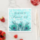Élégant citron turquoise et bleu paon plumes Sweet 16 anniversaire serviettes en papier de fête personnalisées avec le nom de l'invité d'honneur.
