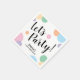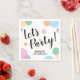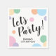 Cette conception de serviette de soirée amusante comprend une typographie de script "Let's Party" avec nom personnalisable et année d'anniversaire. Des points de confettis à la main en forme de ballon, rose, bleu, violet, orange, jaune et vert encadrent les bords.