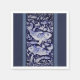 Un élégant design de poisson koi bleu et blanc avec des bordures rayées.