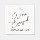 Cette police de script élégante présente le texte We are Engaged! pour un look moderne et sophistiqué à votre décor de fiançailles.